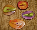 This button is used on its own or as a stacking component with the Corozo Slices, the Abstract Corozo and Abstract Corozo Chunky Buttons (see the picture for examples). The stacking components make a very beautiful and unusual detail on cardigans, purses and anything you can think of. There are many colors to choose from so the combinations are great. You can sew the buttons with coordinating thread or a different color. Be Creative!